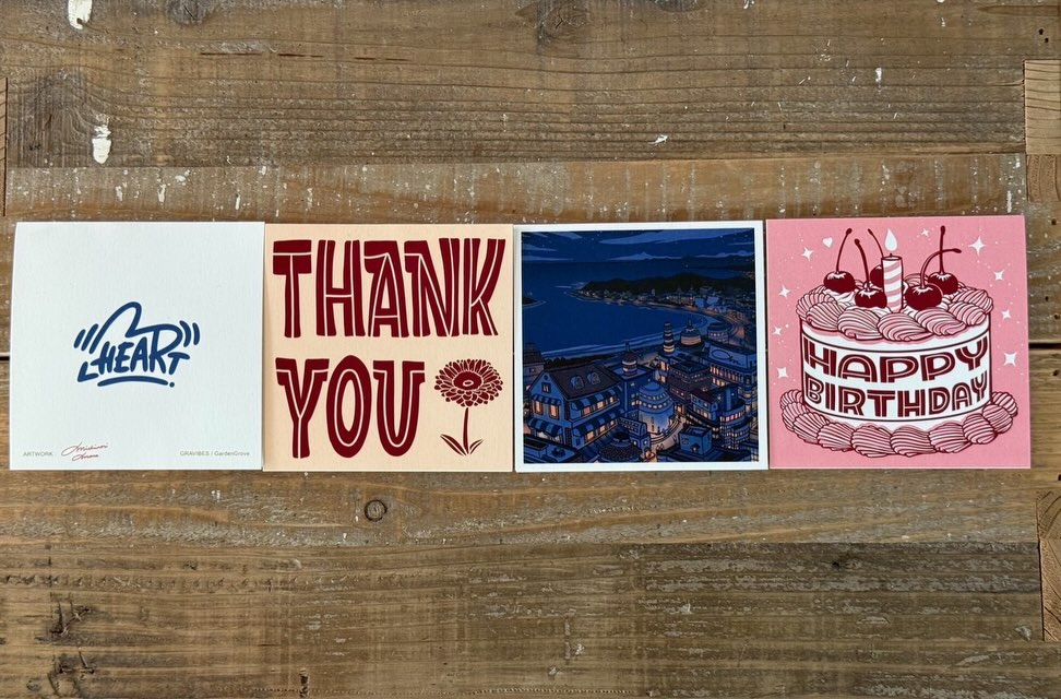 「THANK YOU 」「HAPPY BIRTHDAY」「ORIGINAL ART」の3種類を3名のアーティストに書き下ろし。