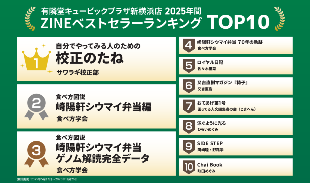 有隣堂 キュービックプラザ新横浜店 2025年間 ZINEベストセラーランキング