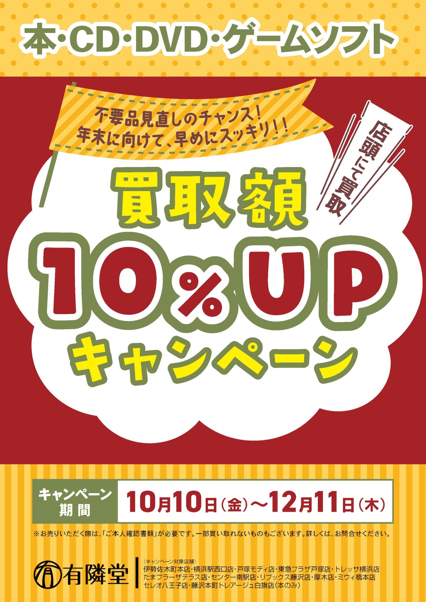 本・CD・DVD・ゲームソフト買取額10%UPキャンペーン