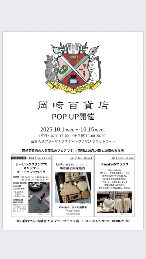 たまプラーザテラス15周年記念イベントとして『岡﨑百貨店出張POPUP』をオープン