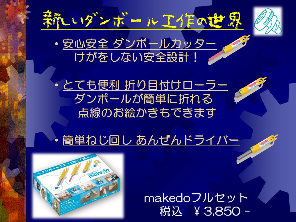 安全なカッターやドライバーを使って、自由にダンボール工作を楽しめるキットの販売会です。
