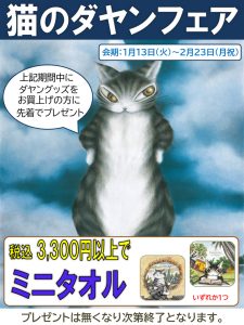 お買上3,300円(税込)以上でミニタオルを差し上げます。 柄は2種類、ランダム配布 数量限定、なくなり次第終了です。 お早めにご来店ください!!