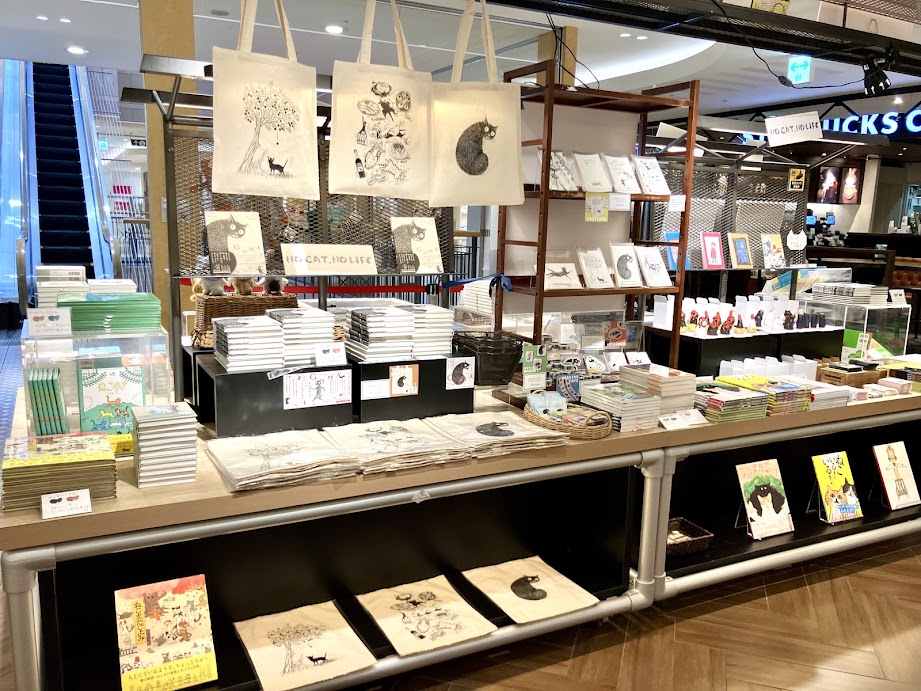 毎年恒例「NO CAT,NO LIFE」フェア始まりました。 画像は初日の開店前のものなので売り切れている作品もあります。 (gogo3jino,うちの子のけだまだまは完売) 猫の本とグッズのフェアです。 ぜひお立ち寄りください。